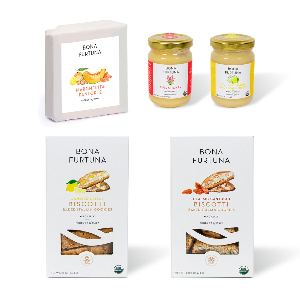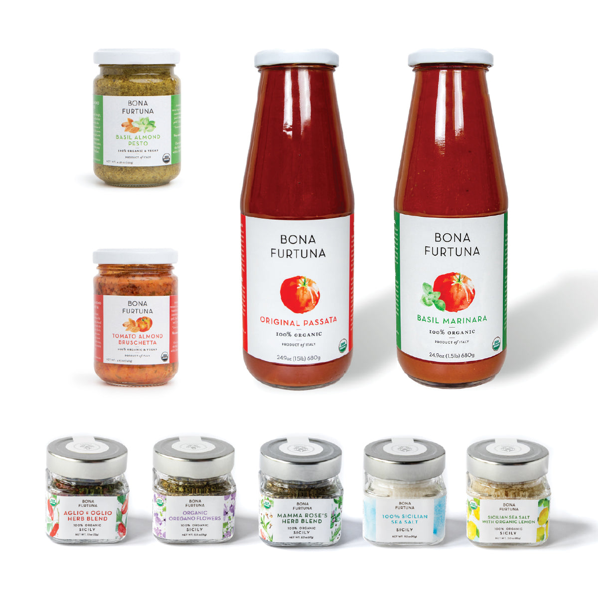 One of our finest Italian food gift baskets, get a true taste of Italian heritage with our award-winning organic Forte Blend and Biancolilla Centinara Extra Virgin Olive Oils Enjoy alongside our stunning 7-year aged Balsamic Vinegar, pestos, or one of our unique salt & herb blends. Enjoy our best-selling heirloom pastas with our Marinara Sauce, made from 100% Corleonese tomatoes native to Sicily, and savor every moment with our iconic Italian snacks: Taralli crackers and organic biscotti cookies.