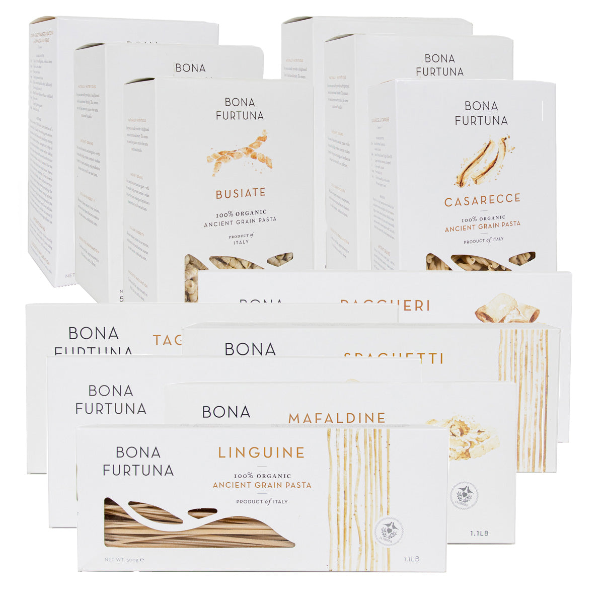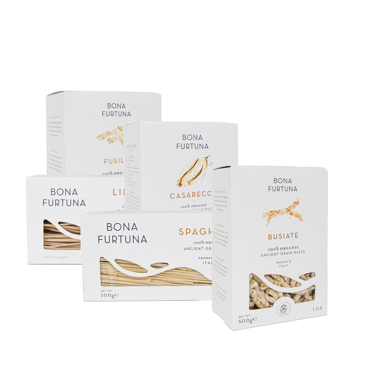Bona Furtuna’s Ancient Grain Pasta from Italy celebrates the rich spirit of Sicilian land and tradition. Made with 100% organic, non-GMO heirloom wheat like Perciasacchi and Russello, our pasta is non-fortified, non-enriched, and naturally flavorful, with ideal elasticity and easy digestibility.