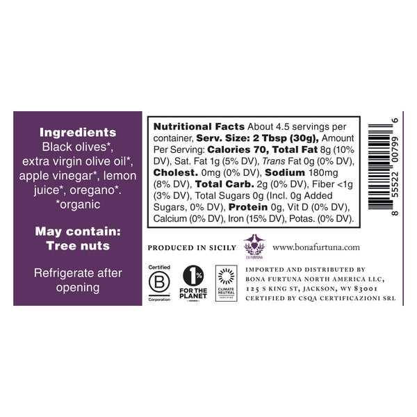 Renditions of olive tapenade have been made since the early days of the Roman empire. Our savory black olive spread boasts simplicity. Containing only black olives and olive oil, it is a true celebration of the unique and popularly bitter-sweet stone fruit.