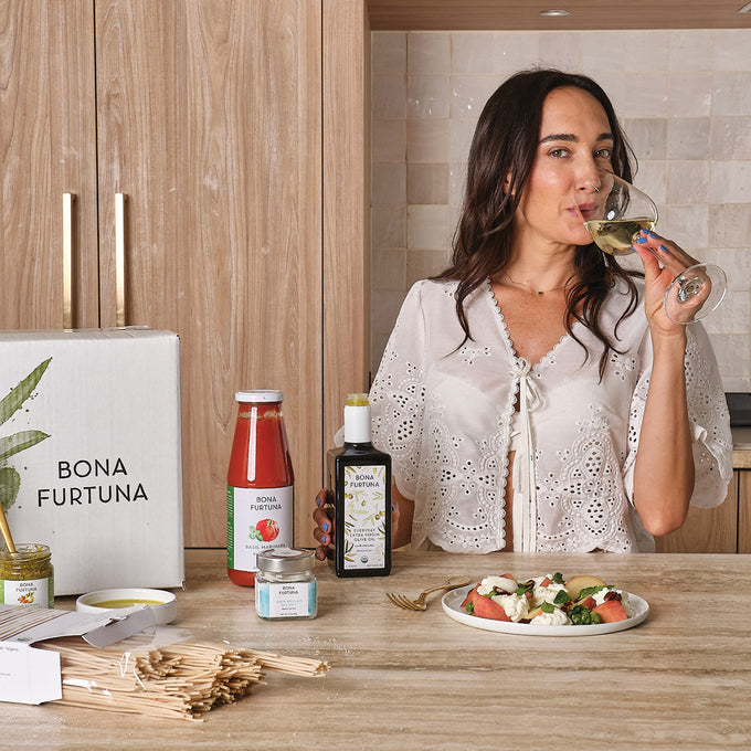 It’s a prepaid monthly food subscription box featuring Bona Furtuna products and chef-curated recipes perfect for gifting the foodie in your life.